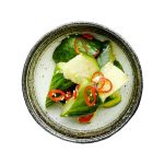 Krokante Kip Salade, Zoetzure Komkommers, Nigiri Garnaal 2x, Nigiri Zalm 2x, Nigiri Tonijn 2x,