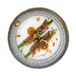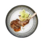 Lauw-warme, rosé gebakken eendenborst, in fijne plakjes gesneden en afgetopt met een huisgemaakte teriyakisaus. Een elegante combinatie van malse textuur en rijke, hartige smaken.