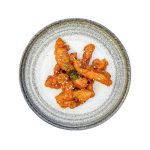 Krokante kipblokjes, geglazuurd met een rijke zoete-knoflookmarinade in Koreaanse stijl – perfect knapperig en boordevol smaak.