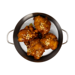 Krokante kipblokjes, geglazuurd met een rijke zoete-knoflookmarinade in Koreaanse stijl – perfect knapperig en boordevol smaak.