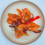 Oosters gewokte Gamba's met paprika en ui