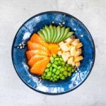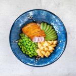 Salmon, Avocado, Sweet Omelet, Edamame, Sesameseeds