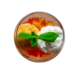 Mango en citroen sorbet geserveerd popping boba.